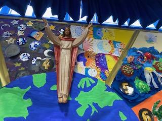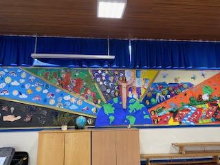 In preparation for our whole school retreat with Dan and Emily, each class was asked to produce some art based on 1 day of the creation story. The children used the skills they have been working on in class to create their display. I am sure you will agree the finished work looks amazing. Thank you, also , to any parents who sent in work form home to add  to our display.