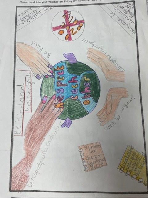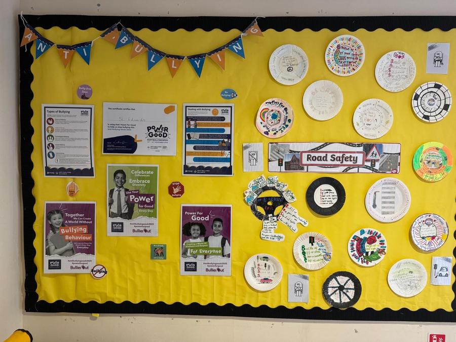 Each Key stage then completed a task to reinforce this message, this has created a new display board in school so children are continuously reminded that we need to use our power for good to end all forms of bullying.