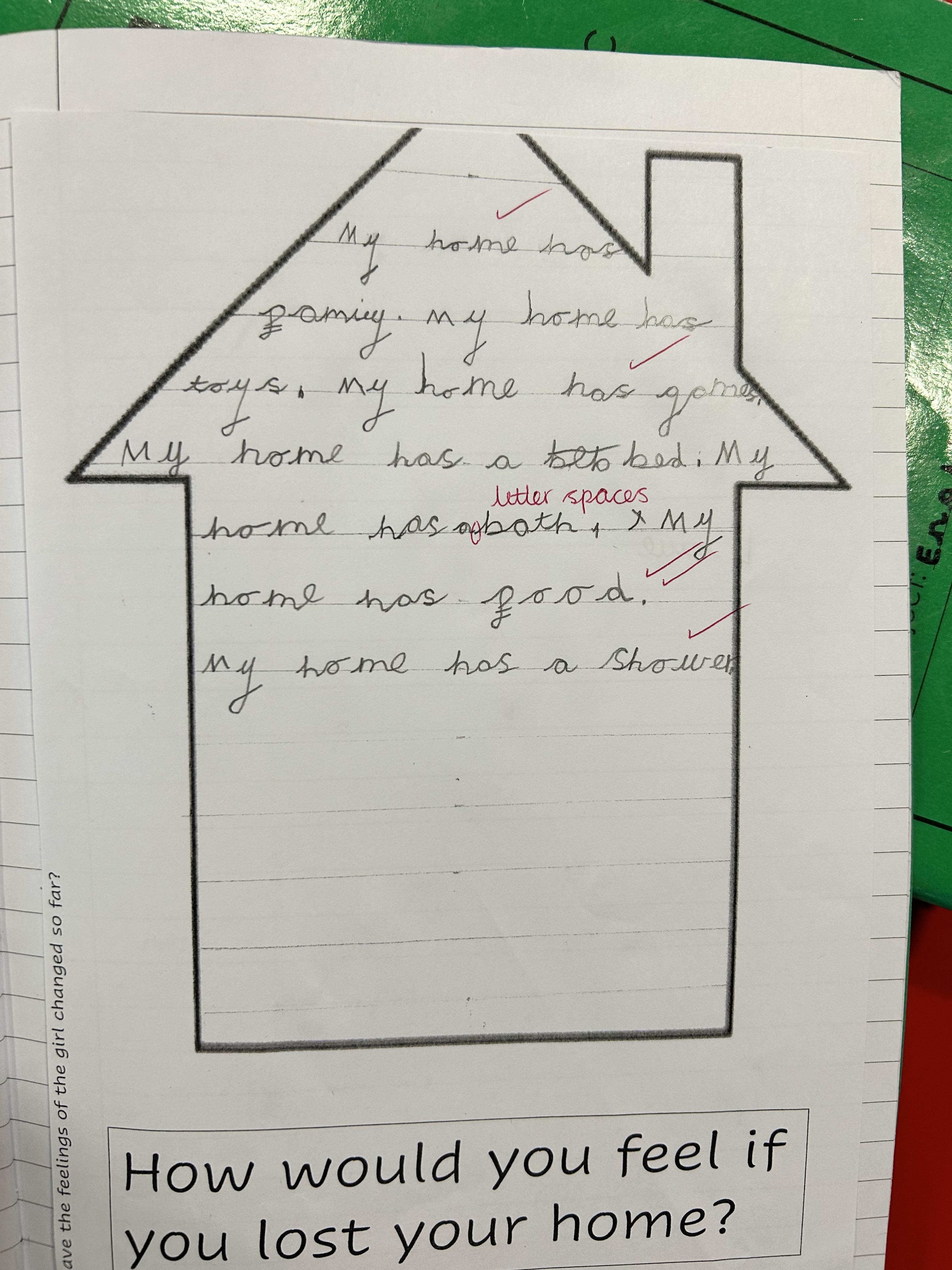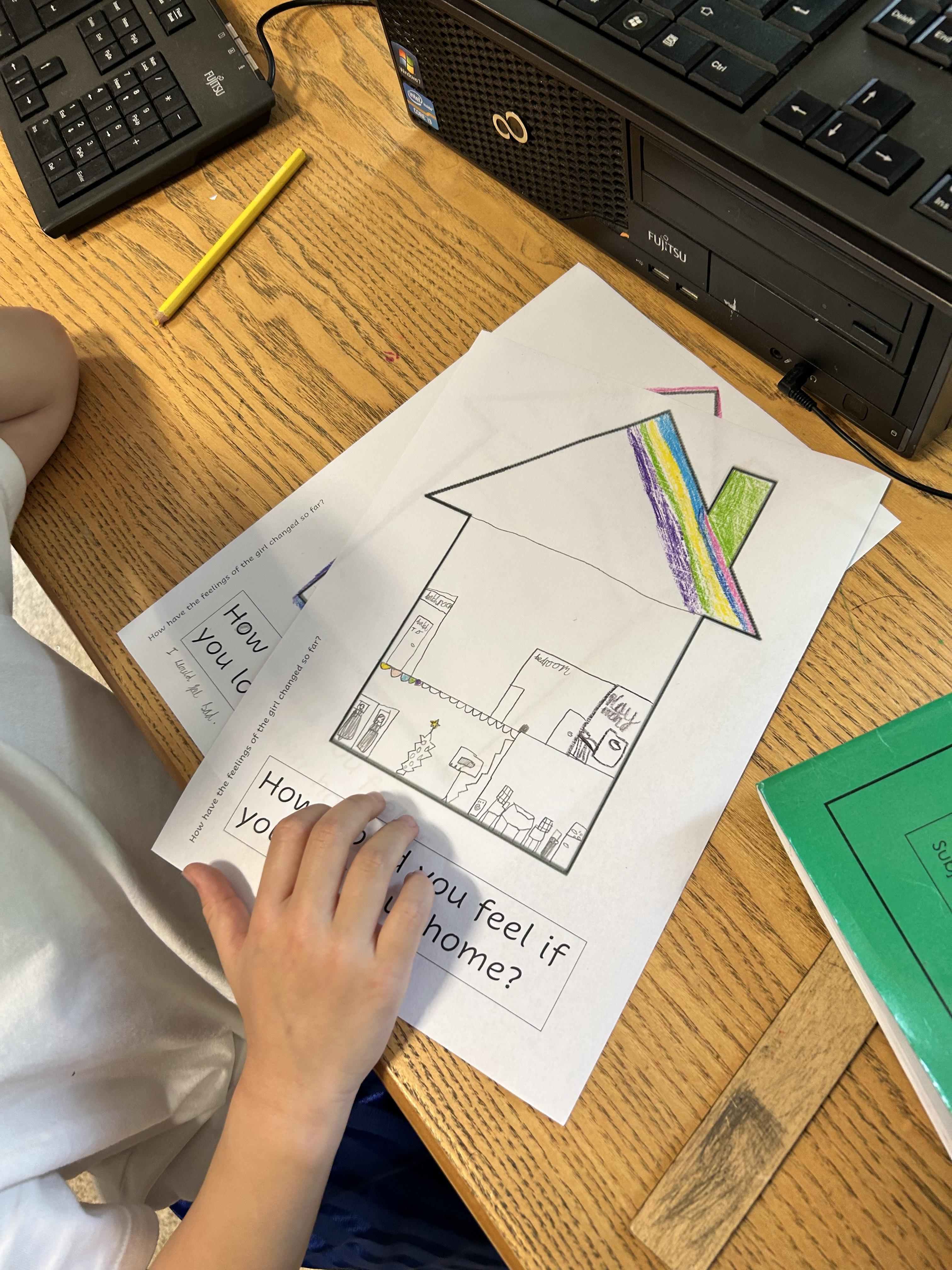 In Year 1, we read the book 'The Day War Came'. The children thought about what the word 'home' meant to them and how they would feel if they lost their home.